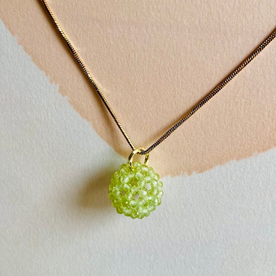 8月の誕生石、ペリドットの小さな小さなフラーレンです