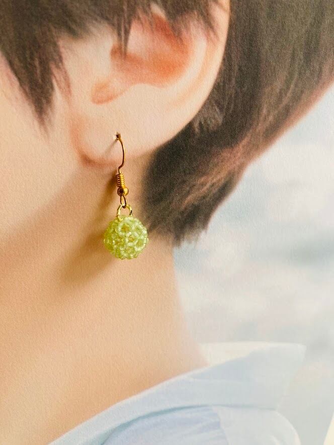 若葉のように穏やかな色は、耳元で揺れても胸元にあっても手の上で転がしても