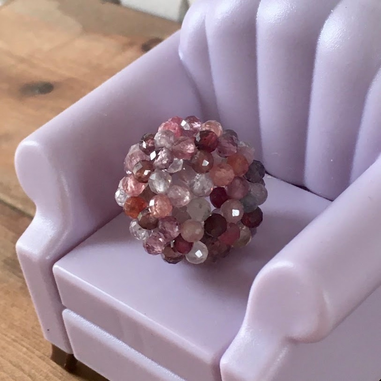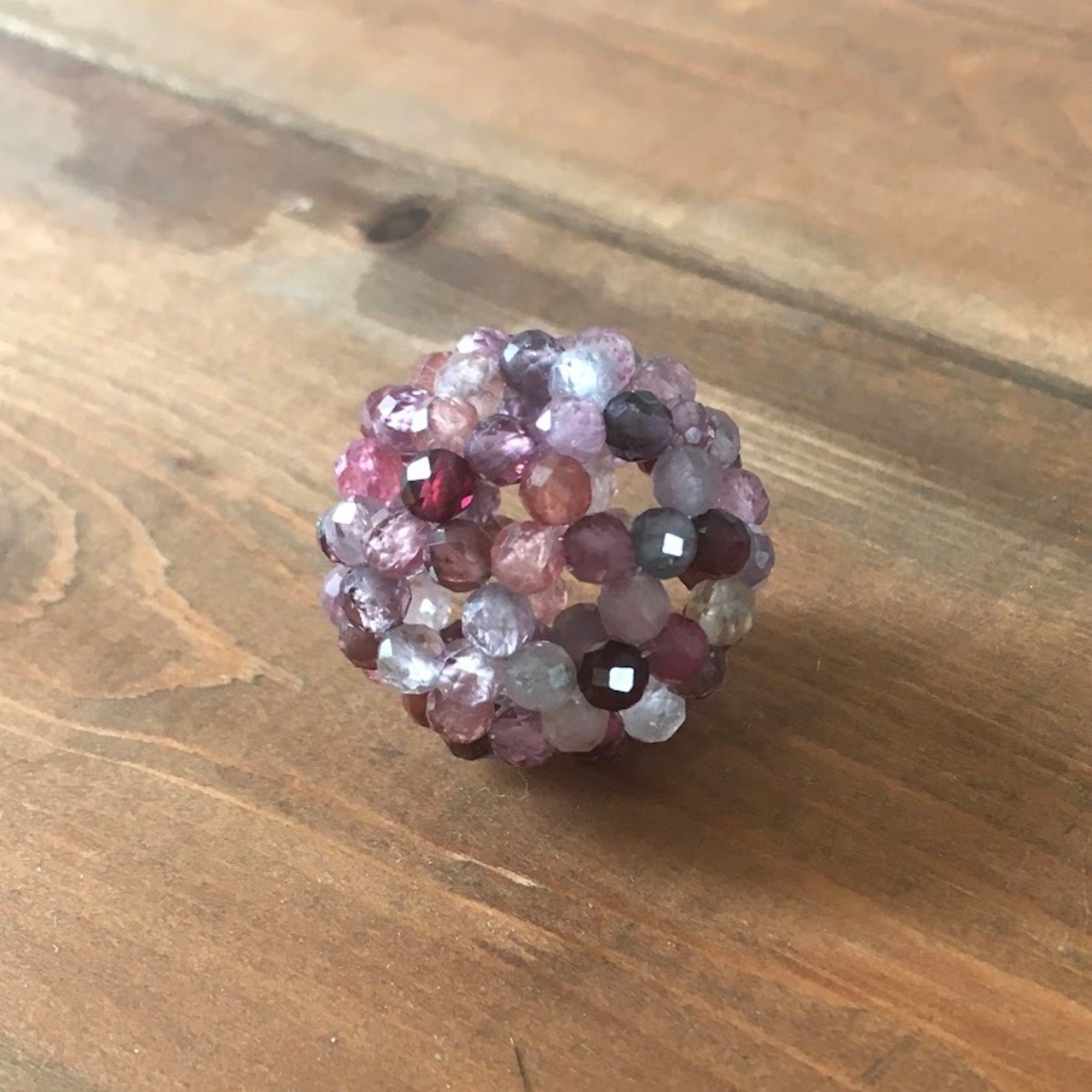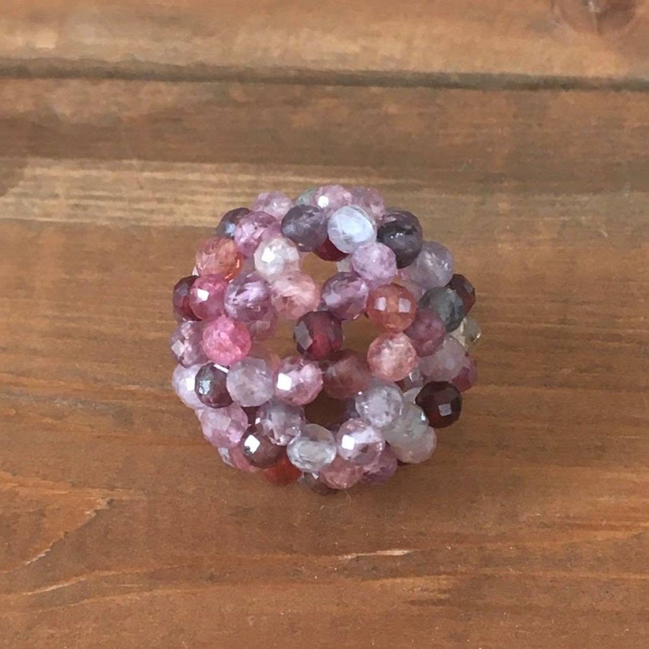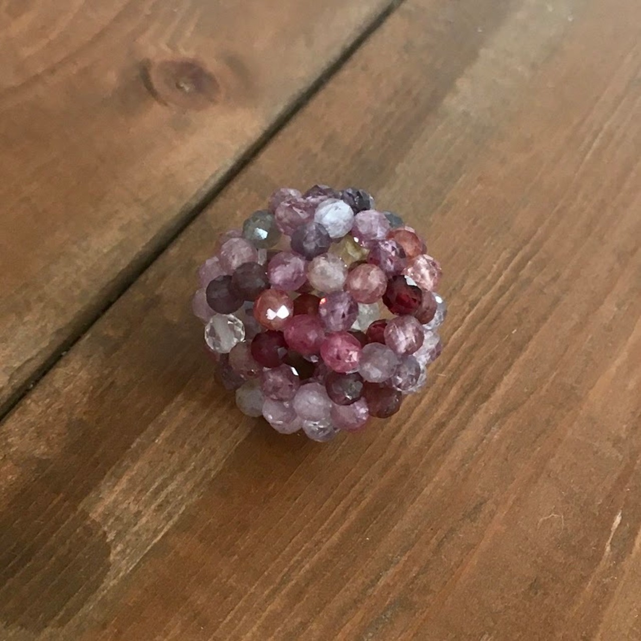 レッドスピネルだけだと高価になりすぎますが、他の色も入っていることで価格を抑えられつつ、一粒一粒違う色なのに全体が調和していて気品を感じるフラーレンです^^