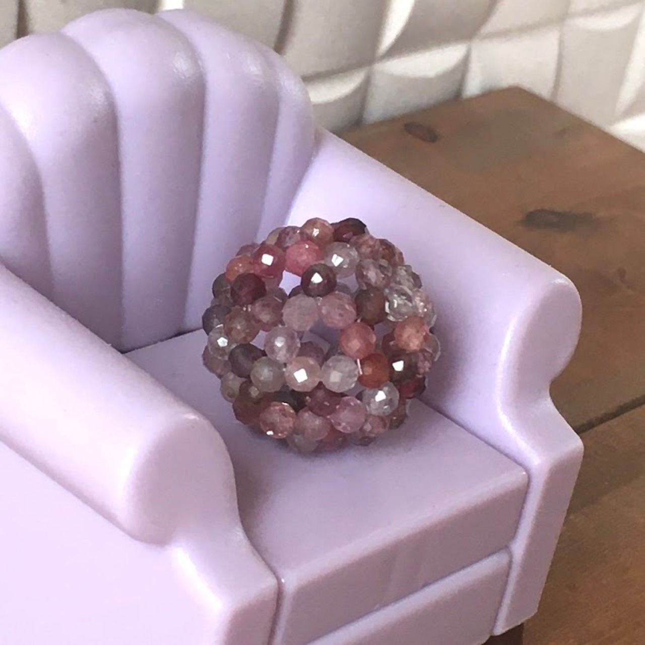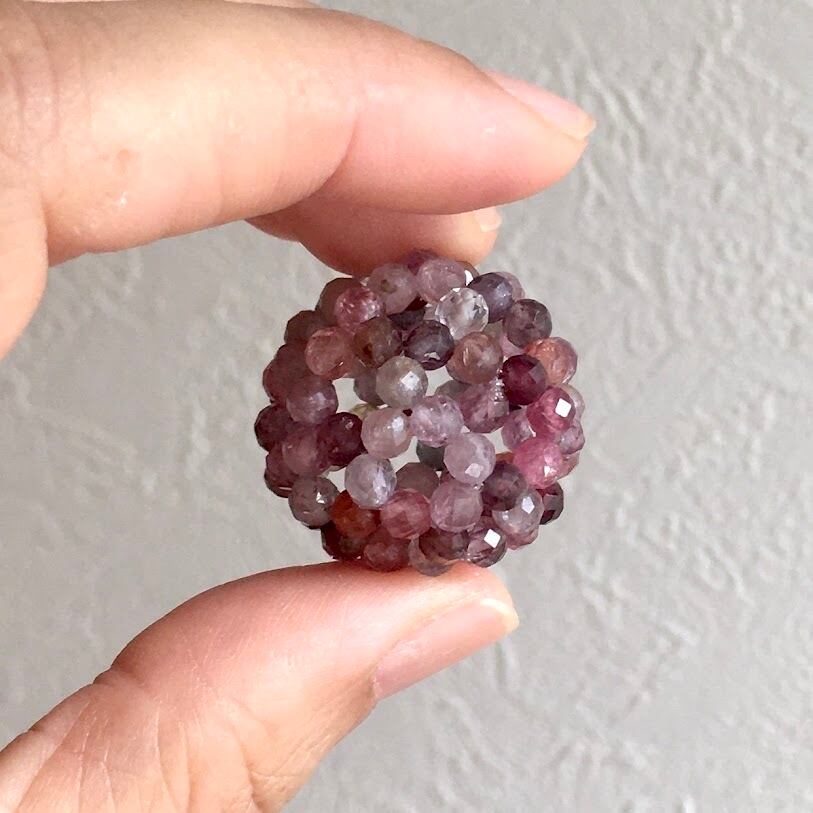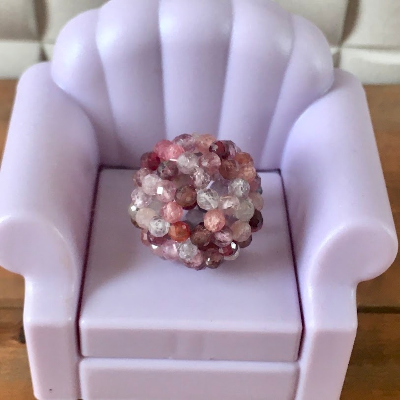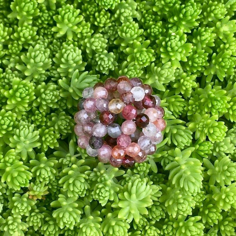 レッドスピネルだけだと高価になりすぎますが、他の色も入っていることで価格を抑えられつつ、一粒一粒違う色なのに全体が調和していて気品を感じるフラーレンです^^
