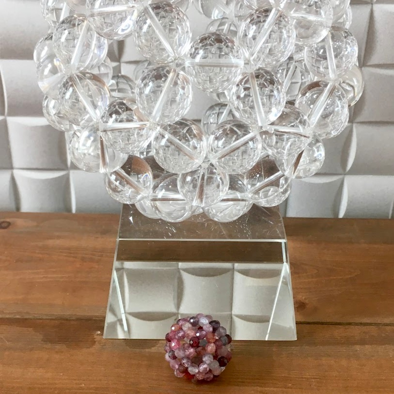 ・一つひとつ天然石で手作りで製作していますので、フラーレンにも個性がでてきます。最終的に固く編みあがったものもあれば緩めのものもありますし、天然石も、色の濃い薄いや、多少の形のずれがあるものもあります。あまりに形が崩れるもの以外はフラーレンとして問題ありませんので、どうか個性として捉えられて、自分の手元に来た子を唯一無二の存在として大切にしていただけると幸いです