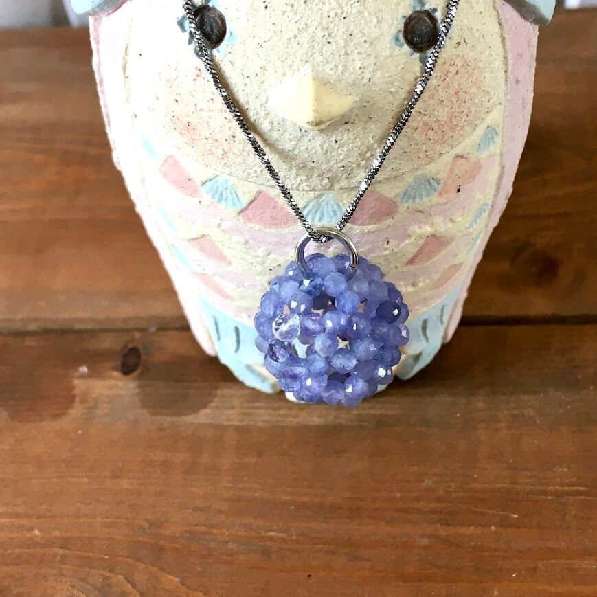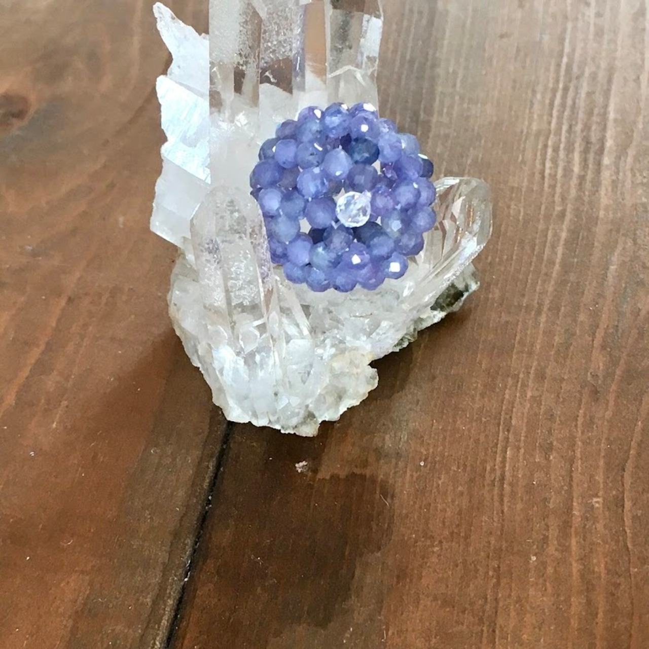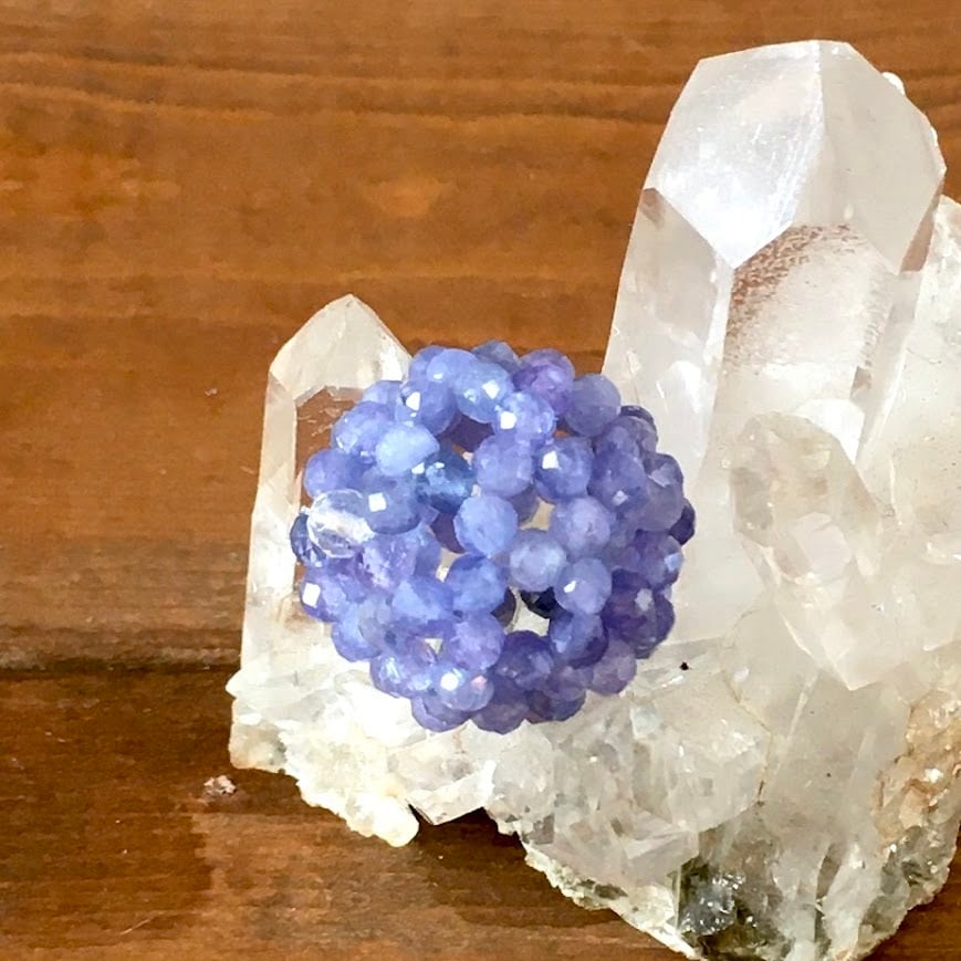 ・使用している天然石:タンザニア産タンザナイトAA++ ラウンドカット3㎜ 89粒、水晶AAAラウンドカット3㎜ 1粒