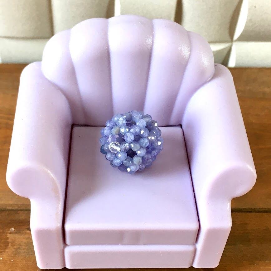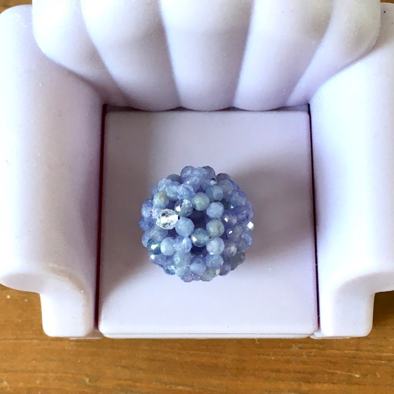 1967年にアフリカのタンザニアで「ゾイサイト」でありながら美しい青色で透明感をもつ変種として発見されティファニー社により命名された石だそうで、透明なブルー系の石は基本的に高価だなぁと感じていますがこれもそのひとつです
