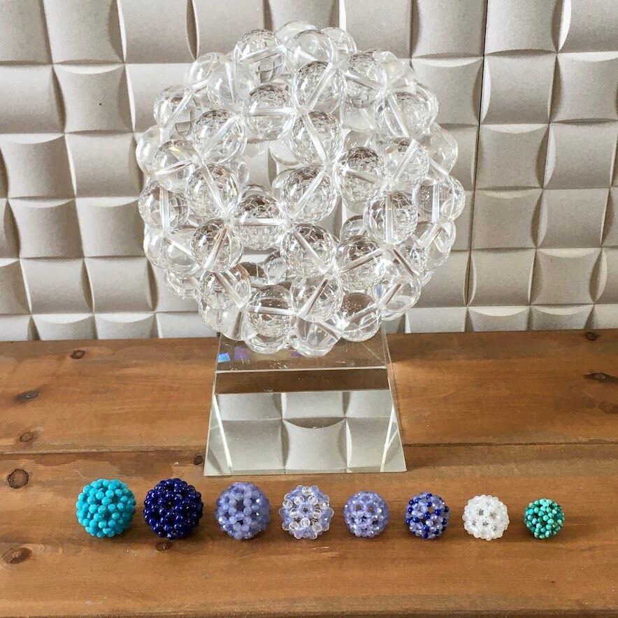 ・一つひとつ天然石で手作りで製作していますので、フラーレンにも個性がでてきます。最終的に固く編みあがったものもあれば緩めのものもありますし、天然石も、色の濃い薄いや、多少の形のずれがあるものもあります。あまりに形が崩れるもの以外はフラーレンとして問題ありませんので、どうか個性として捉えられて、自分の手元に来た子を唯一無二の存在として大切にしていただけると幸いです