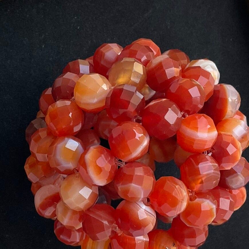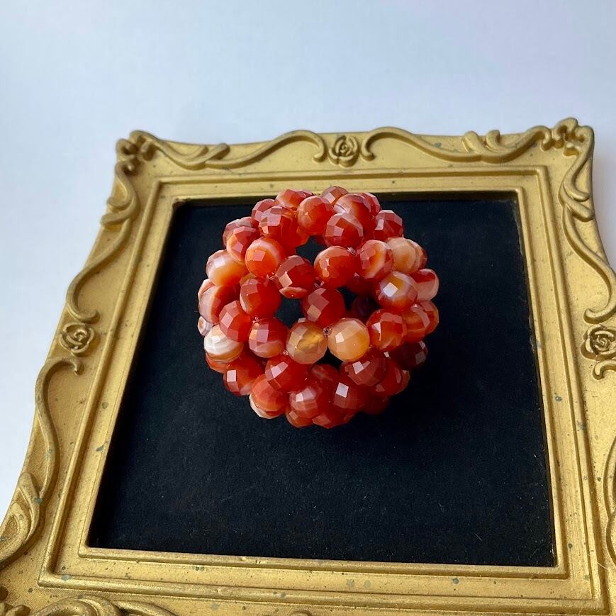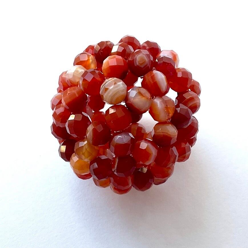 こちらは64面ラウンドカット8mm玉で、90粒それぞれの石の個性が楽しいです。どれ一つとして同じ模様が無いので、お気に入りの縞模様を見つけられてみてくださいね(私はお気に入りのシマシマ見つけました^-^)!石言葉は「幸せな結婚」「夫婦の和合」などほんわかしたキーワードなのですが、元気の出るお色味なのでやる気もアップしそうです(実際ポジティブになれるカーネリアンが混ざっていますのでそうなのだと思います!)