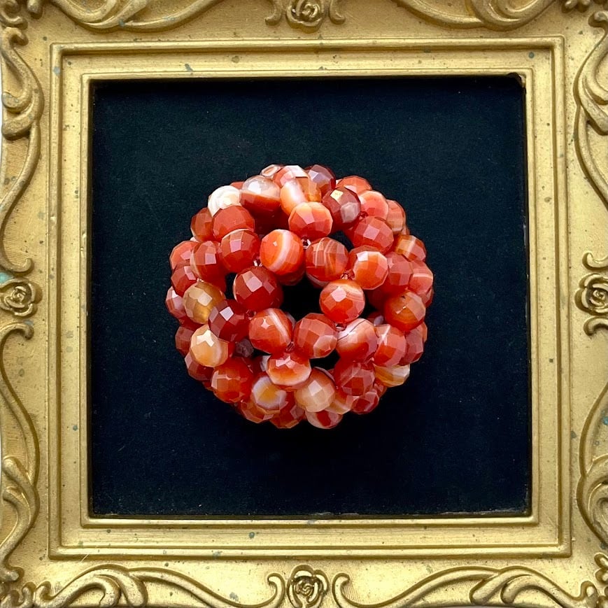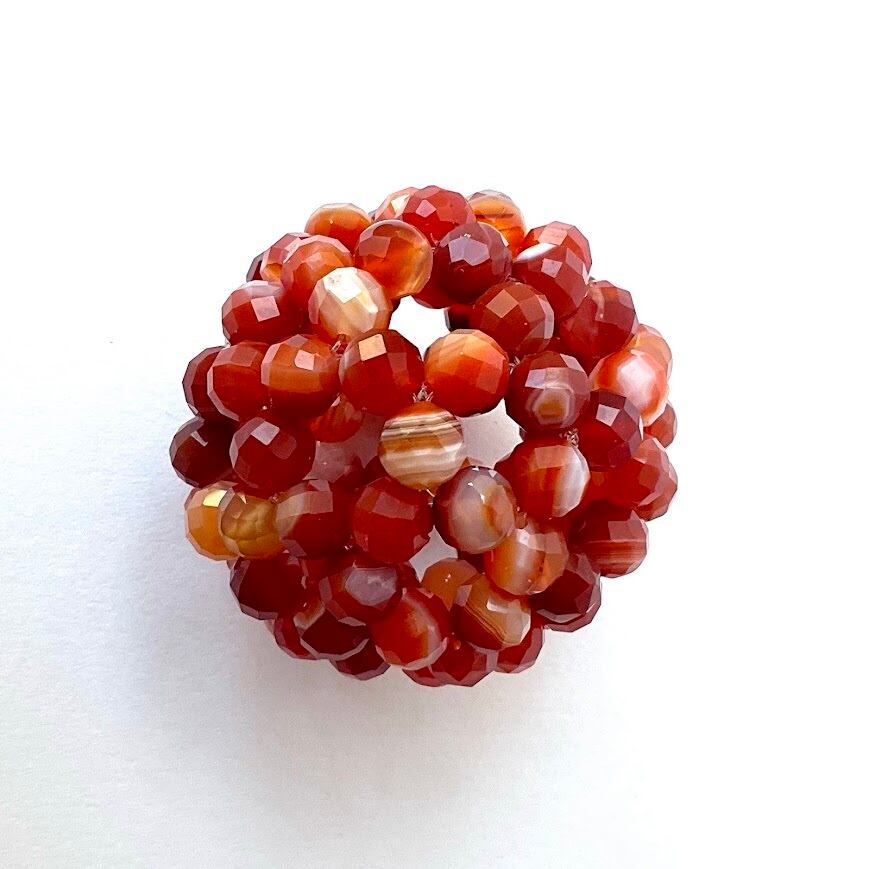 今回のフラーレンには連に混ざっていたいくつか縞の無いもの(つまりカーネリアン)を採用するか迷いましたが、すべて縞模様だとシマシマが目に賑やかすぎるのでそのまま縞無しも採用してみました。ぜんぶシマシマよりも落ち着いている感じがします^^詳しくはアップの画像をご覧くださいね