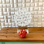 フラーレンは、正五角形12個と正六角形20個が組合さった32面体です。この形はレオナルド・ダ・ヴィンチが追求したといわれ「完璧なる多面体」「最強のパワーが宿る究極の図形」としてスピリチュアル的な部分にも作用すると言われています。また化学の世界では炭素の安定する形C60として様々な分野で応用されており、その名前は上記の形状の建築物を設計した建築家のバックミンスター・フラー氏からとられ、バックミンスター・フラーレンの略称となっています。別名バッキーボールとも言われています。素材や製作者を問わず、一般的にこの形状のものはフラーレンと呼ばれます