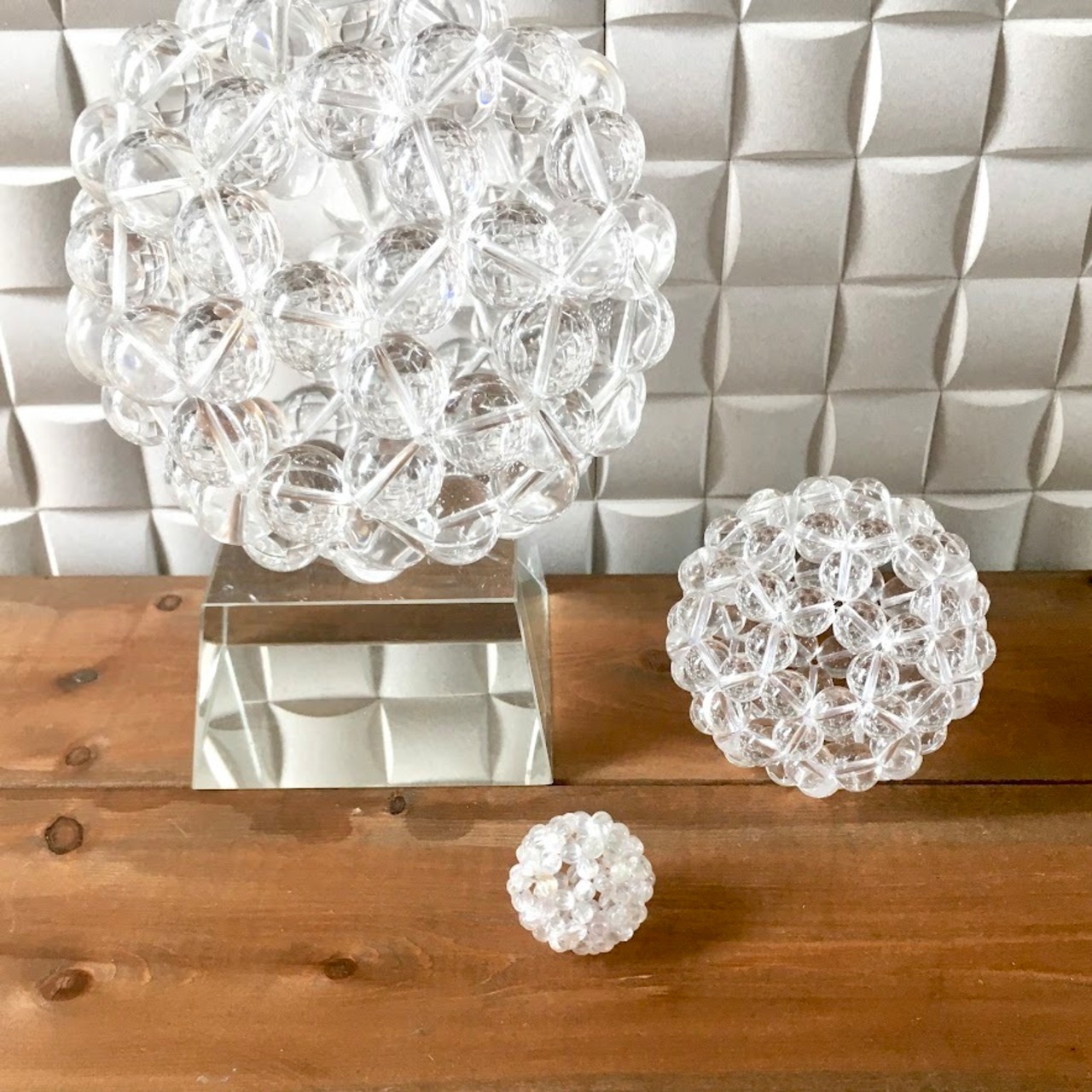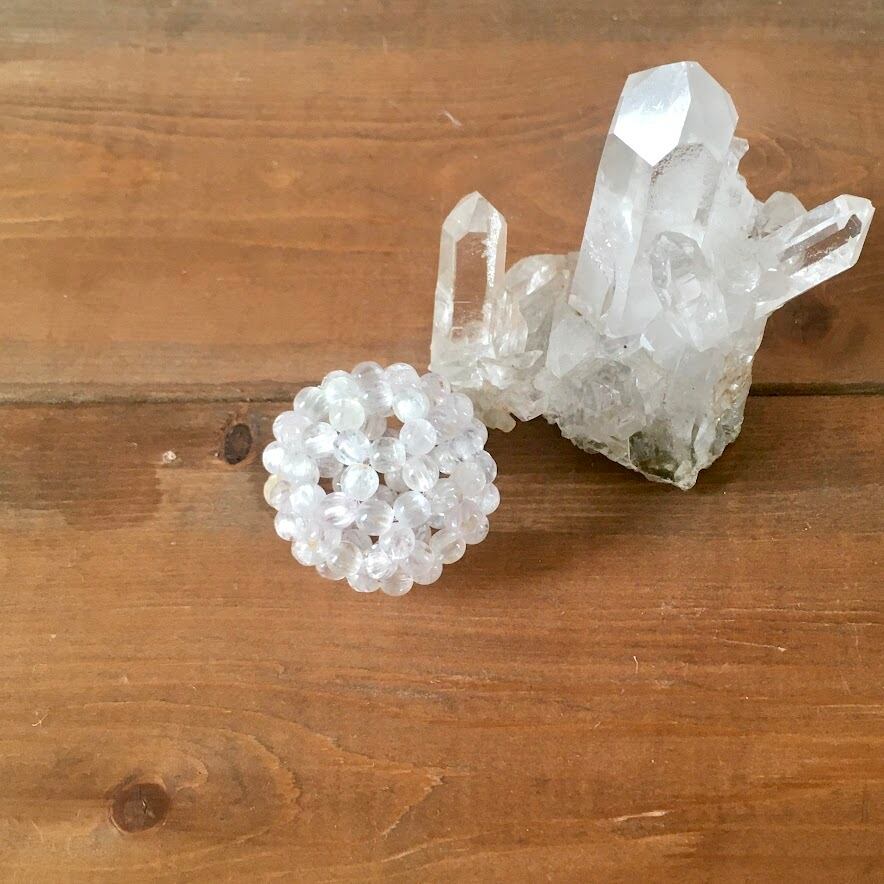 ・一つひとつ天然石で手作りで製作していますので、フラーレンにも個性がでてきます。最終的に固く編みあがったものもあれば緩めのものもありますし、天然石も、色の濃い薄いや、多少の形のずれがあるものもあります。あまりに形が崩れるもの以外はフラーレンとして問題ありませんので、どうか個性として捉えられて、自分の手元に来た子を唯一無二の存在として大切にしていただけると幸いです
