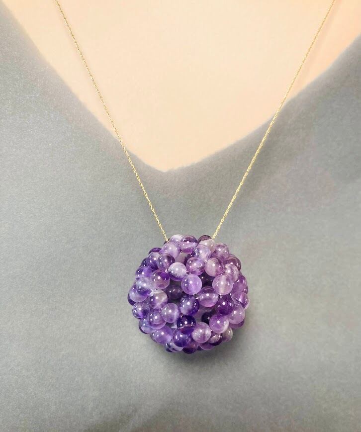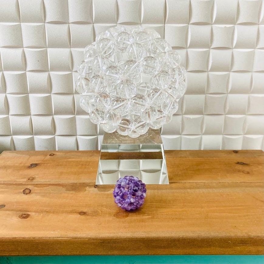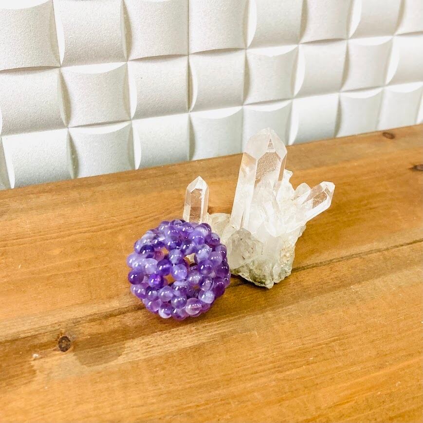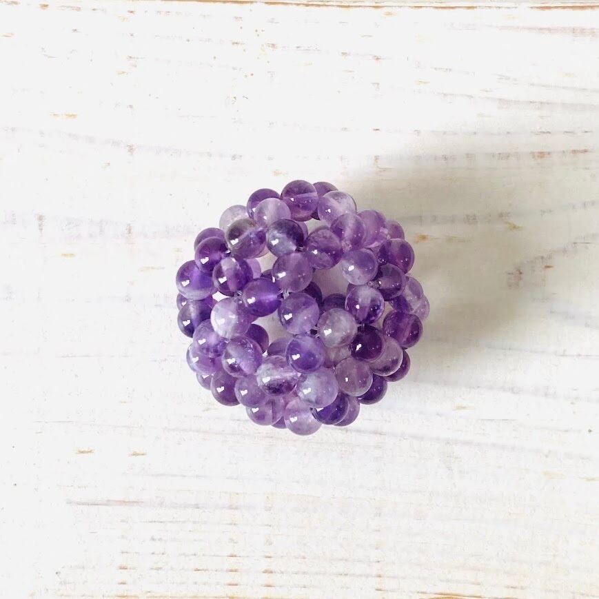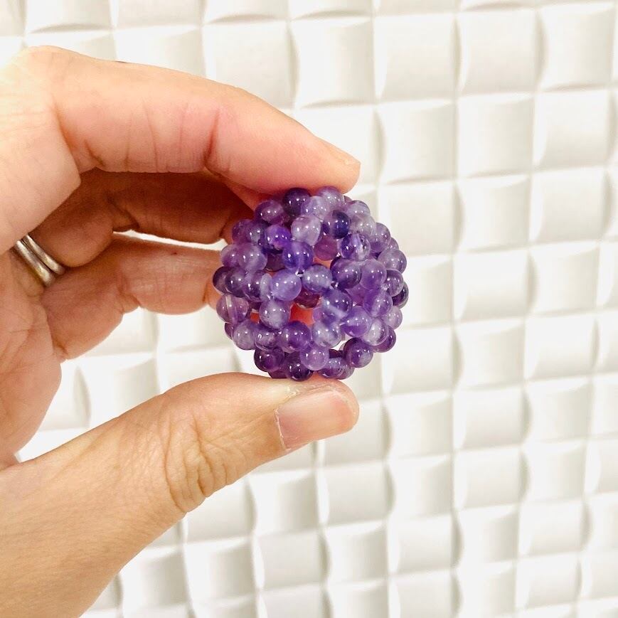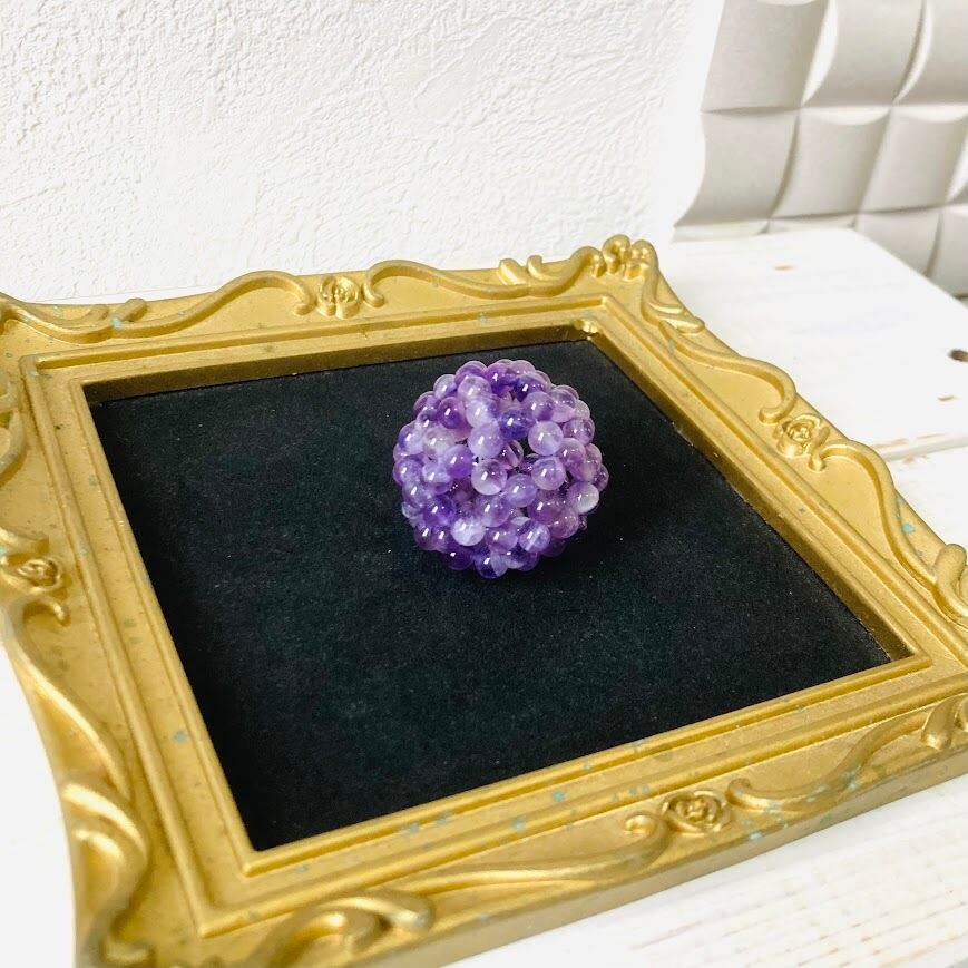 和名で紫水晶のアメジストは、パワーストーンの代表格ですね。スタンダードでかつ安定の浄化パワーをもつ水晶に紫の神秘の要素が加わって、さらにその石で創られたフラーレンといったら最強なのではないでしょうか。創っているときも天からの応援が入るように、毎回邪魔が入らず落ち着いて創ることができるからアメジストって不思議です^^
